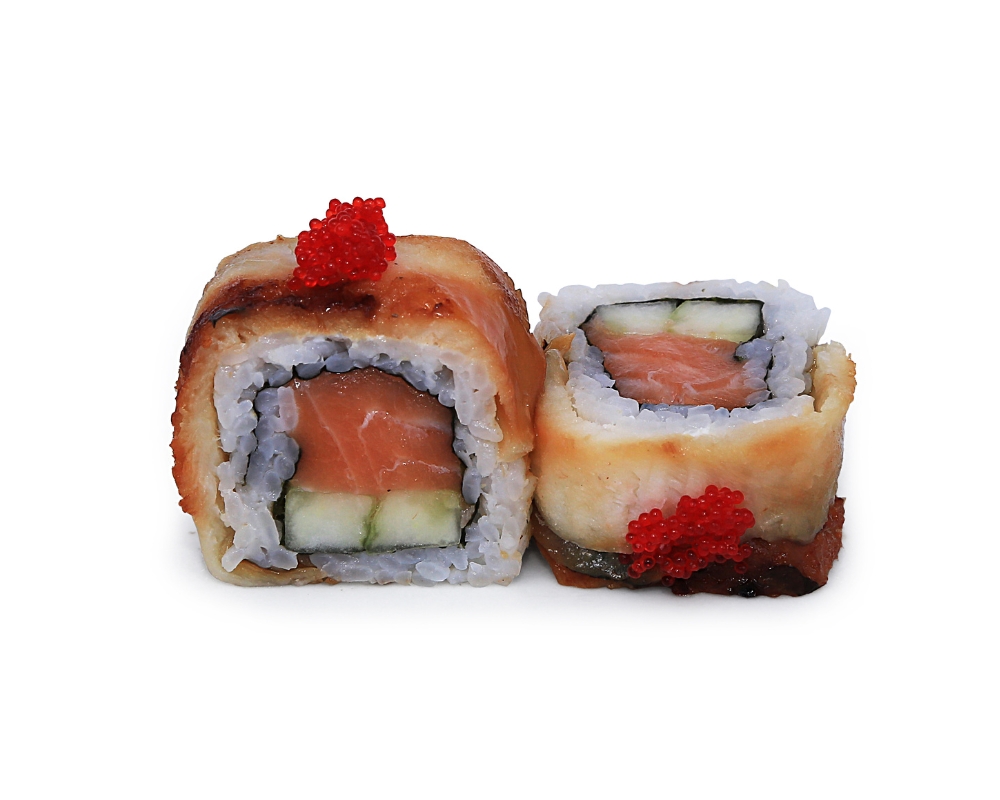 Anguille, saumon, concombre, tobico, cheese