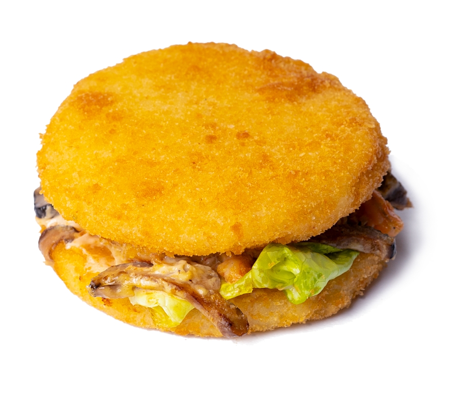 Riz frit, fromage cheddar, crevettes, champignons Shiitake, salade, sauce maison. Servi avec des SuriFry.